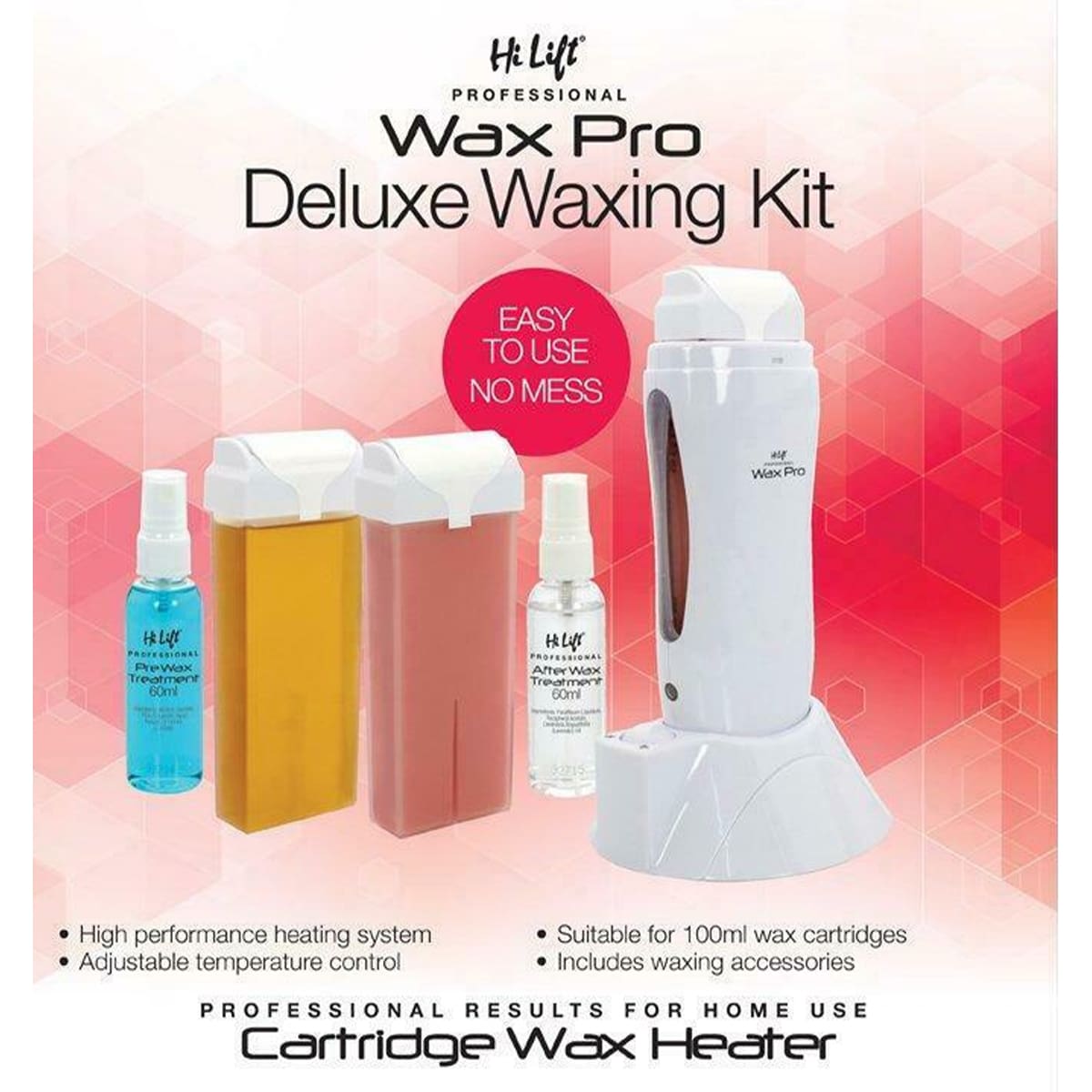 Achieve professional smoothness with the Hi Lift Deluxe Hand Held Waxing Kit. Includes pre-wax solution, after hair removal oil, and versatile wax cartridges for flawless hair removal. SKU G879