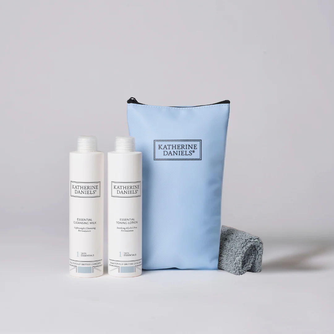 Essential Cleansing Milk + Essential Toning Lotion Duo, with bonus micro cloth & water resistant travel bag